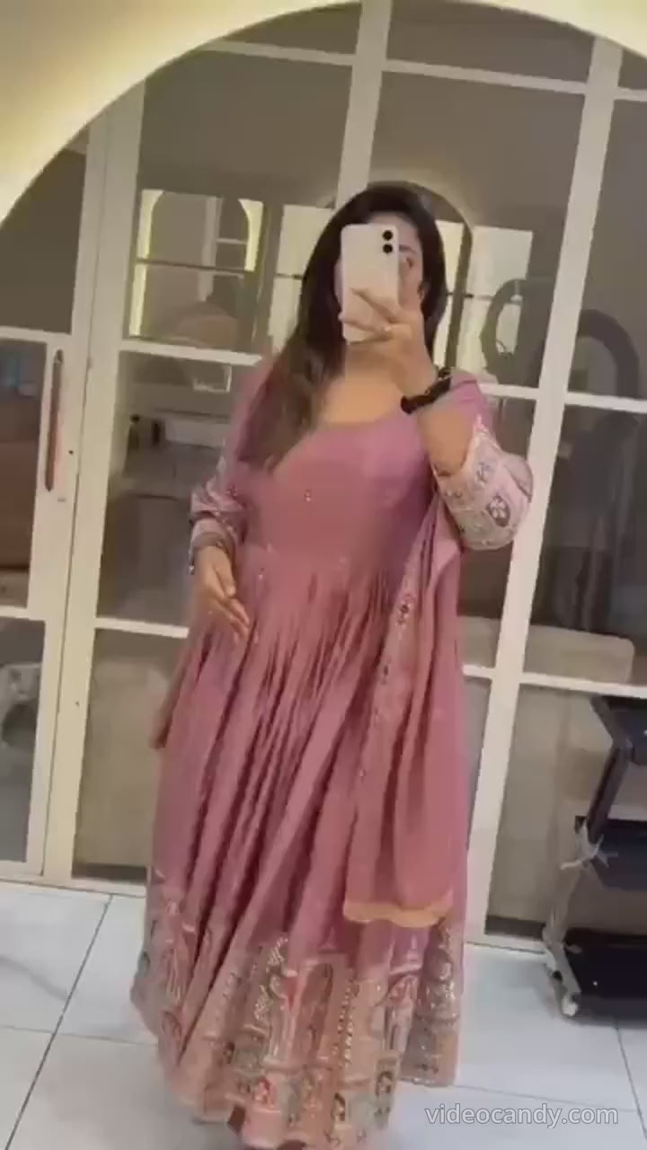 Royal Pure Chinon Silk Embroidered Gown Pant Dupatta Set