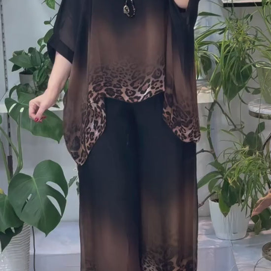 Get wild with this gradient leopard print set! 🐆🔥 From the crew neck top to the wide-leg pants, it’s the perfect combo of fierce and comfy. Get ready to roar in style! 😎💥